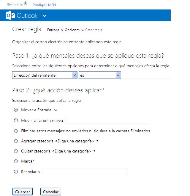 - Elegir opcion reglas para ordenar nuevos mensajes