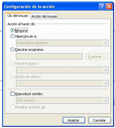 Configuracion de la ventana de Accion
