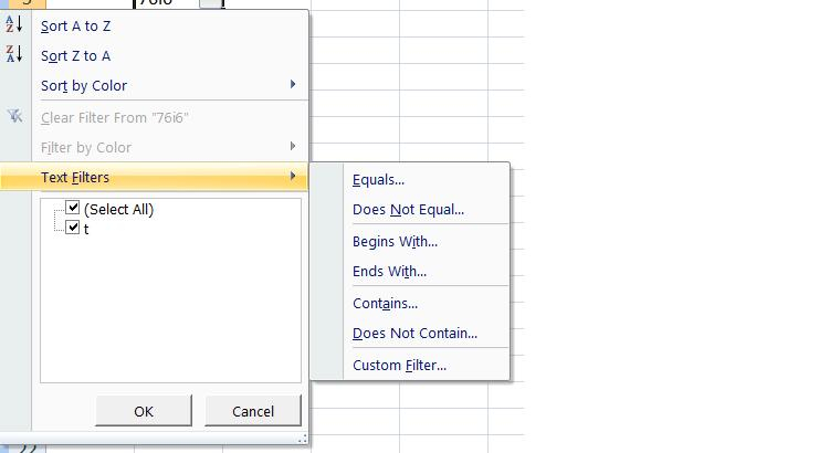 Termina con... Excel presenta todos los registros cuyo valor (ya sea numerico o de texto), termine por el numero o texto especificado.